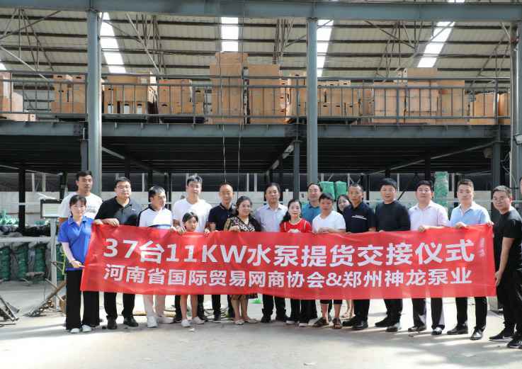 7月25日15:00分37台300m³ 11KW大功率水泵提货交接仪式在九游·网站官网-九游(中国)的工厂准时举行。